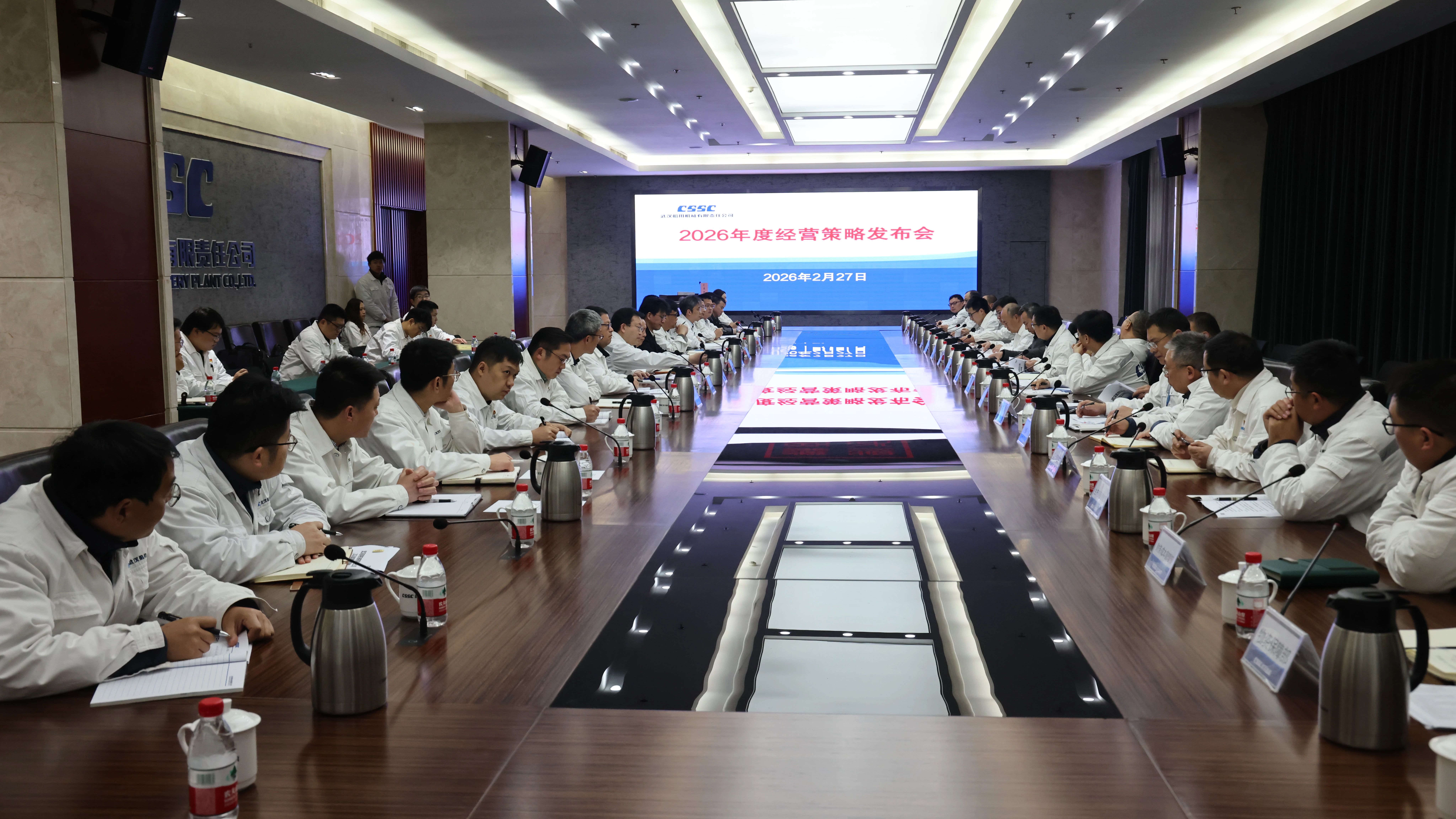 2月27日上午,中船武漢船機(jī)在研發(fā)樓102會(huì)議室召開(kāi)2026年經(jīng)營(yíng)策略發(fā)布會(huì),公司黨委副書(shū)記、總經(jīng)理程立兵,副總經(jīng)理潘文勝,總會(huì)計(jì)師、工會(huì)主席陳世龍,副總經(jīng)理孫凱、副總經(jīng)理霍小劍、副總經(jīng)理胡發(fā)國(guó)、副總經(jīng)理程文池出席會(huì)議。會(huì)議由程文池主持。