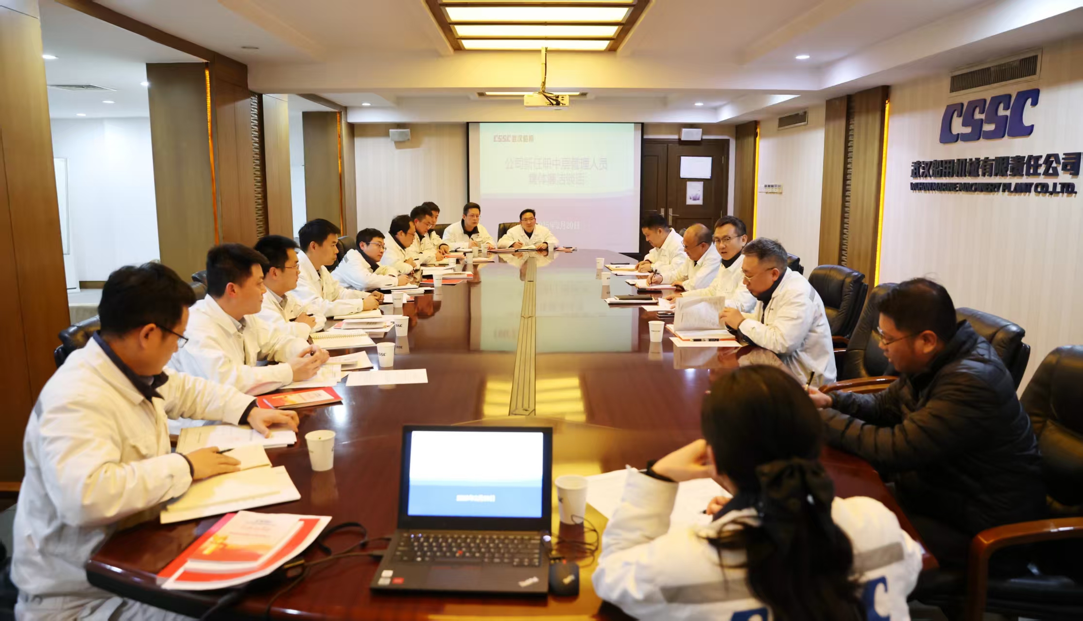 2月20日,中國船舶武漢船機開展新任職中層管理人員集體廉潔談話。公司黨委副書記、總經(jīng)理程立兵,公司黨委委員、總會計師陳世龍參加。
